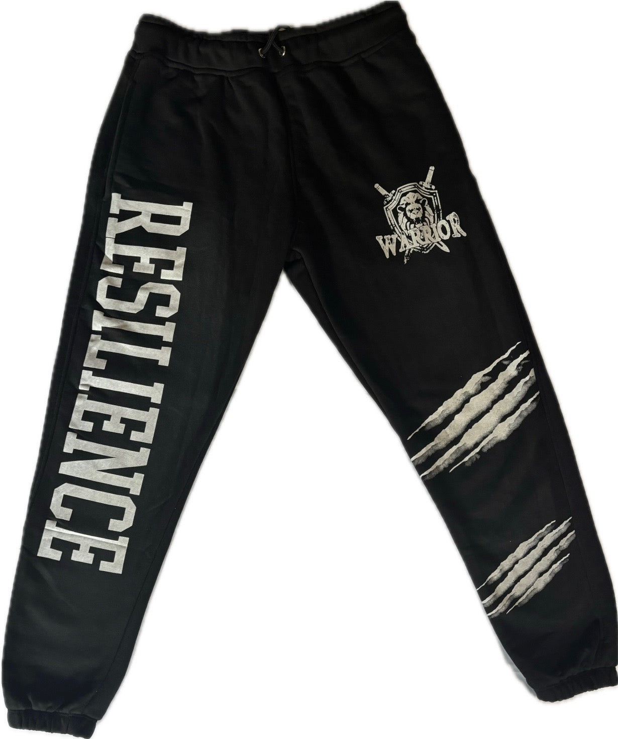 Crafted from a soft yet durable fabric blend, they deliver all day comfort whether you're relaxing, grinding, or training. The bold RESILIENCE print down the leg, combined with striking WARRIOR crest and claw-mark accents, makes these joggers a statement piece that reflects your strength from the inside out.
